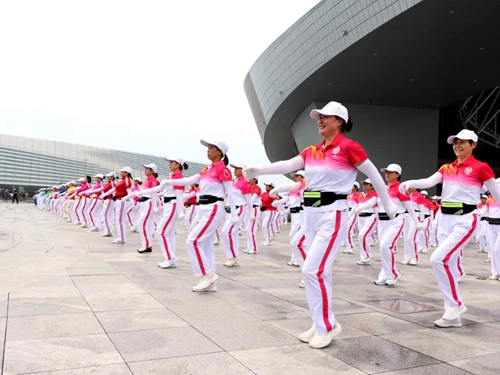 在奧體中心開闊的平臺上,群眾們開展健步走活動,他們踏著快樂的節拍,每個人的臉上都洋溢著笑容,收獲著滿滿的幸福。
