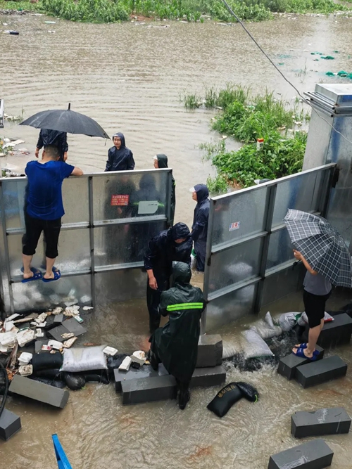 夏日暴雨來襲,周邊積水快速上漲,項目部迅速反應,有序組織開展防汛搶險工作,為守護項目安全筑起了堅強堡壘,用實際行動彰顯出城發人忠誠擔當的國企精神。