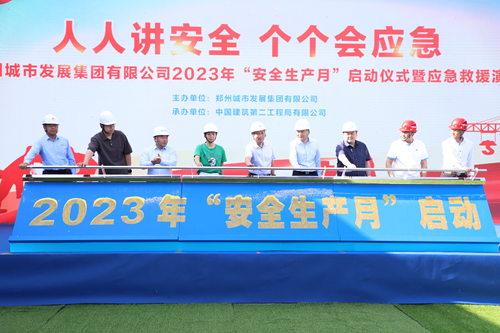為認真貫徹《鄭州市國資國企2023年“安全生產月”活動實施方案》要求,落實國家、省市安全生產工作部署,提升在建項目人員安全意識和避險逃生能力。6月6日,鄭州城發集團在龍湖金融中心外環7號樓項目舉行2023年安全生產月啟動儀式暨應急救援演練活動。