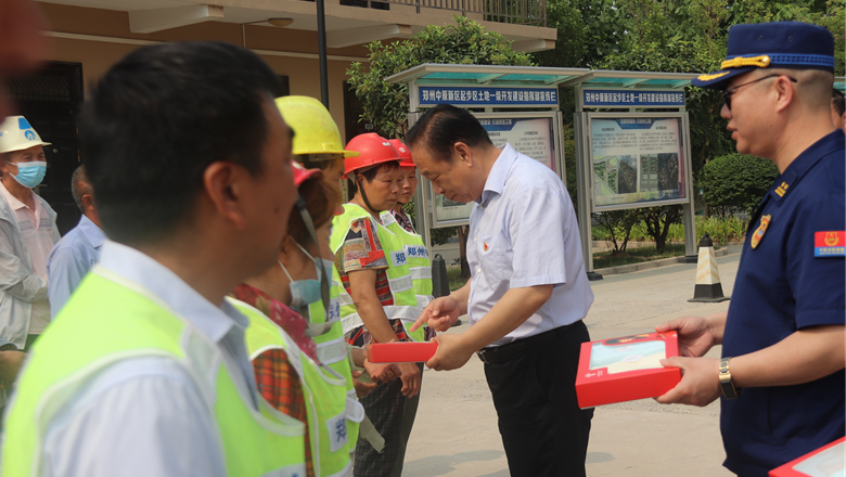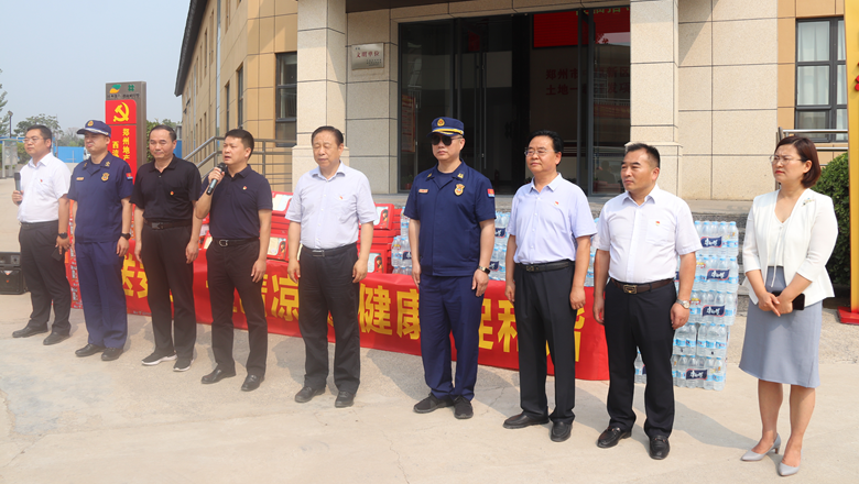 進入夏季以來,持續出現的高溫天氣,給奮戰在建設一線的施工人員帶來嚴峻考驗,廣大職工不畏酷暑,堅守崗位,辛勤付出。為做好廣大職工的防暑降溫工作,切實保護職工身體健康,6月11日,鄭州市總工會、鄭州市消防救援支隊到鄭州地產集團西流湖公司中原新區土地一級開發項目指揮部開展主題為“送清涼、送安全、送健康、促和諧”的夏季送清涼活動。鄭州市一級巡視員、市總工會黨組書記、主席趙新中,市消防救援支隊副支隊長、滅火救援指揮部部長李隆,市總工會副主席宋少丹,鄭州地產集團有限公司監事會主席、工會主席李靜波及西流湖公司黨支部書記、董事長、總經理吉獻亮等領導出席活動。活動由西流湖公司副總經理昌磊主持。