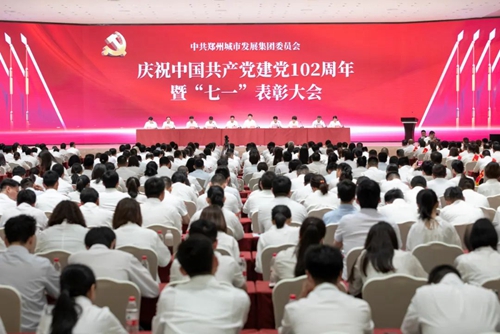 6月28日,鄭州城發集團慶祝中國共產黨成立102周年暨“七一”表彰大會隆重舉行。市國資委黨委副書記朱海新,集團黨委班子成員,各基層黨組織書記、委員,全體黨員等600余人參加會議。會議由集團黨委副書記羅黎明主持。
