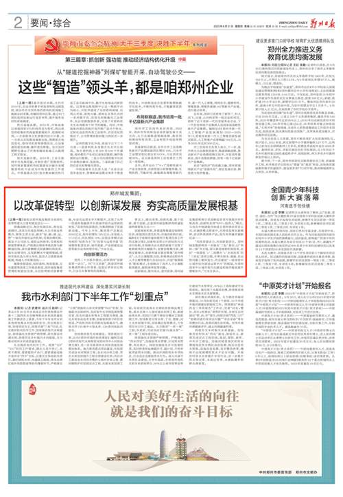 事實上,順應形勢、搶抓機遇,敢于創新、善于創新,正是鄭州城發集團高質量發展的重要發力點——