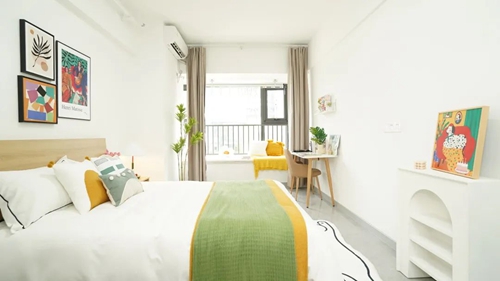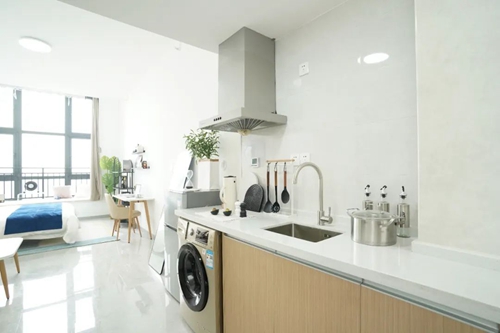 項目配備智能門鎖、獨立衛浴、床、衣柜、書桌、洗衣機、空調、冰箱、抽煙機、晾衣架等,公寓精裝修設計,拎包入住,智能化管理,商業、教育配套齊全,滿足入住人群生活、社交需求。