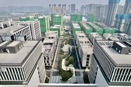 園區秉承對品質的堅守,改進施工工藝,提高建造效率,施工建設全速展開,沿著藍圖軌跡一步步勾勒出企業理想家的美好輪廓。