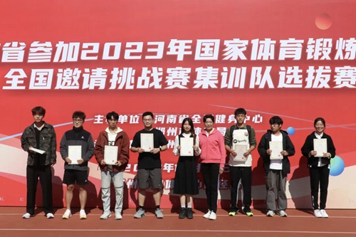 10月22日,河南省參加2023年國家體育鍛煉標準全國邀請挑戰賽集訓隊選拔賽在鄭州奧體中心西側田徑訓練場火熱展開。現場數百余運動員,通過30秒跳繩、男子1000米跑、女子800米跑、立定跳遠、繞桿跑、坐位體前屈等一系列的體能測試,在秋日暖陽中,以飽滿的熱情和能量,挑戰自我,刷新體能成績。