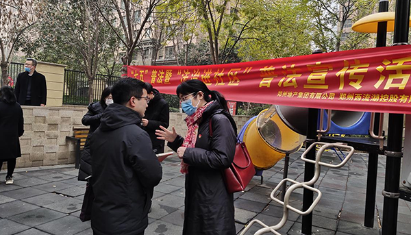 集團黨委委員張華在接受河南商報記者采訪時表示:地產集團作為鄭州市國有企業,全面踐行依法治企的精神和理念,組織開展了多種形式的普法活動,比如開展“法治進項目”、“法治進社區”、舉辦法制講座、拍攝普法宣傳視頻等,把法律實實在在地送到項目上、送到群眾身邊。通過多種形式的普法活動,引導員工和群眾遇事找法、解決問題用法、化解矛盾靠法,提升法律意識,履行國有企業普法宣傳責任。