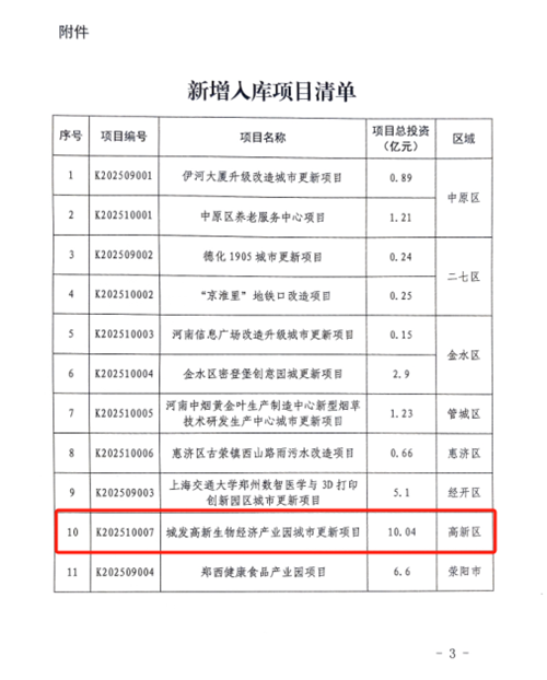 12月3日,鄭州市城市更新項目庫完成新一輪動態調整,鄭州城發集團高新生物經濟產業園城市更新項目成功通過評審,正式納入市級項目庫。這標志著該項目作為鄭州市及高新區重點布局的戰略性新興產業載體,獲得了關鍵性的政策支持與發展動能,為鄭州“產業升級”的城市更新版圖增添了重量級標桿。