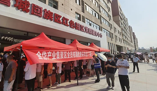 8月1日下午,當得知金岱科創城園區疫情防控任務繁重、工作人員嚴重不足、亟需人手援助時,防疫志愿服務隊成員第一時間分組趕赴紫東河社區、萬盟電商園、管城回族區紅色園區黨群服務中心等疫情防控一線。