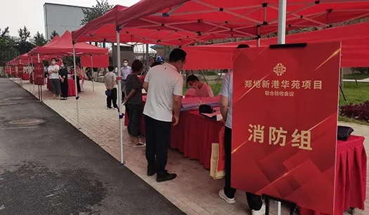 鄭地新港華苑項目于2021年8月26日下午,順利完成由鄭州市城建局牽頭組織,人防、消防、質監(jiān)、規(guī)劃等部門共同參與的聯合驗收,是疫情期間第一個通過聯合驗收的建設項目。為嚴格落實鄭州市新冠肺炎疫情的防控要求,新港華苑項目部提前制定了周密的疫情防控方案,采取了妥善的疫情防控措施,有序組織進入院區(qū)人員掃健康碼、檢查48小時核酸檢測結果、測量體溫、酒精消殺、分發(fā)防疫包等。經過啟動儀式、書面匯報、現場巡查、聯動測試等環(huán)節(jié),鄭地新港華苑項目順利完成聯合驗收工作。