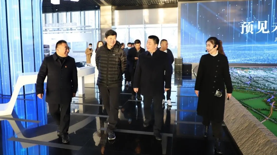 在地產集團金岱智慧產業園項目工地現場,調研聽取匯報后,曹東鋒對地產集團打造的首個產業園項目在科學規劃、產業定位、配套服務及前期預招商方面的工作成果給予充分肯定,對地產集團在國企改革、業務轉型和產業園區項目開拓方面的成效表示認可。在商務服務中心講解員的深入講解中,曹東鋒一行先后參觀了商務服務中心的各個功能區,觀看了項目沙盤和宣傳片,聽取了鄭地發展公司董事長吉獻亮對項目情況的匯報,深入了解金岱科創城基本情況、投資規模、項目進度、園區布局、區位優勢以及小李莊車站項目未來發展規劃。隨后,曹東鋒一行參觀了地產集團西流湖黨支部黨史學習教育成果展,并調研了鄭地發展公司平安建設工作。曹東鋒對公司黨支部創新開展的黨史學習教育系列活動、民生實事工程及公益志愿服務給予高度評價,對地產集團“黨建+平安建設”工作模式、妥善解決農民工薪資發放及切實推進新形式下“零事故零上訪零案件”創建工作表示肯定。