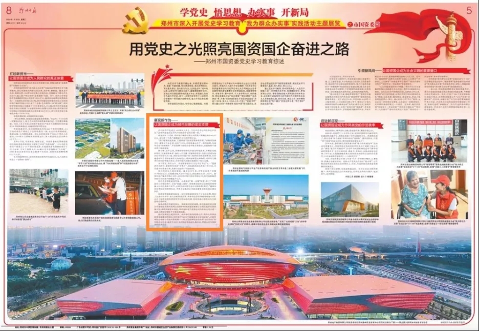 剛剛過去的2021年是我們黨建黨一百周年。在建黨百年的重要時刻,黨中央深謀遠慮,鑒往知來,在全黨深入開展黨史學(xué)習(xí)教育活動,從百年黨史中汲取新時代趕考路的智慧和力量。1月25日,鄭州市深入開展黨史學(xué)習(xí)教育“我為群眾辦實事”實踐活動主題展覽之市國資委篇《用黨史之光照亮國資國企奮進之路--鄭州市國資委黨史學(xué)習(xí)教育綜述》被《鄭州日報》刊發(fā)、《人民日報》客戶端轉(zhuǎn)載。