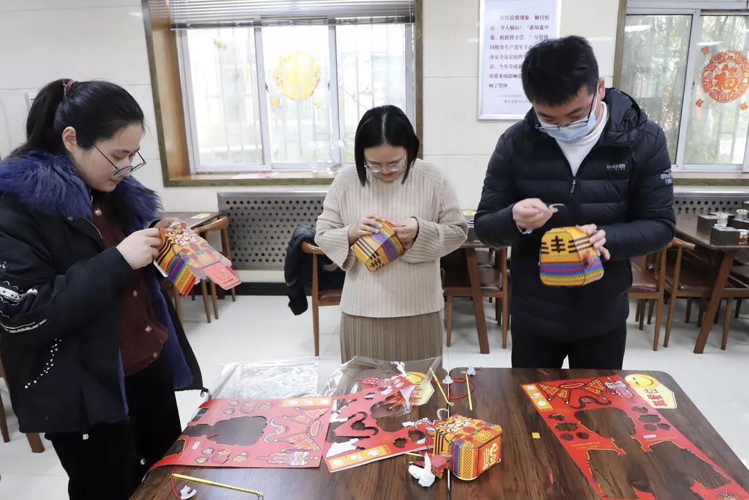 在DIY手工燈籠制作時,大家各自拿著半成品材料對照參考說明進(jìn)行粘貼制作。相互交流、相互指導(dǎo),通過一步步的搭建、固定、粘貼,最終象征著喜慶、團(tuán)圓的萌虎燈籠逐一呈現(xiàn)眼前。